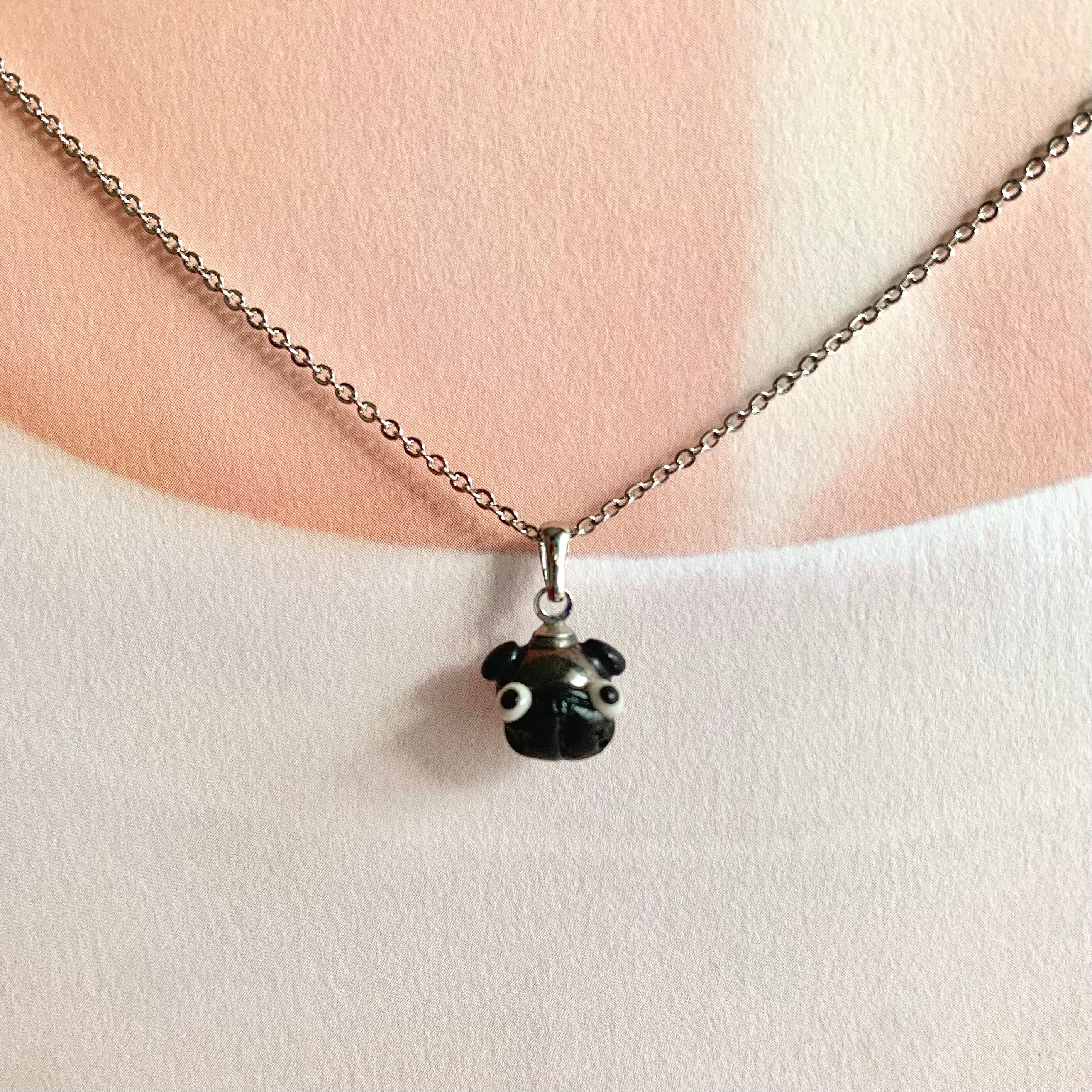 ミニ樹脂パール×樹脂粘土で制作したパールパグのネックレスです。