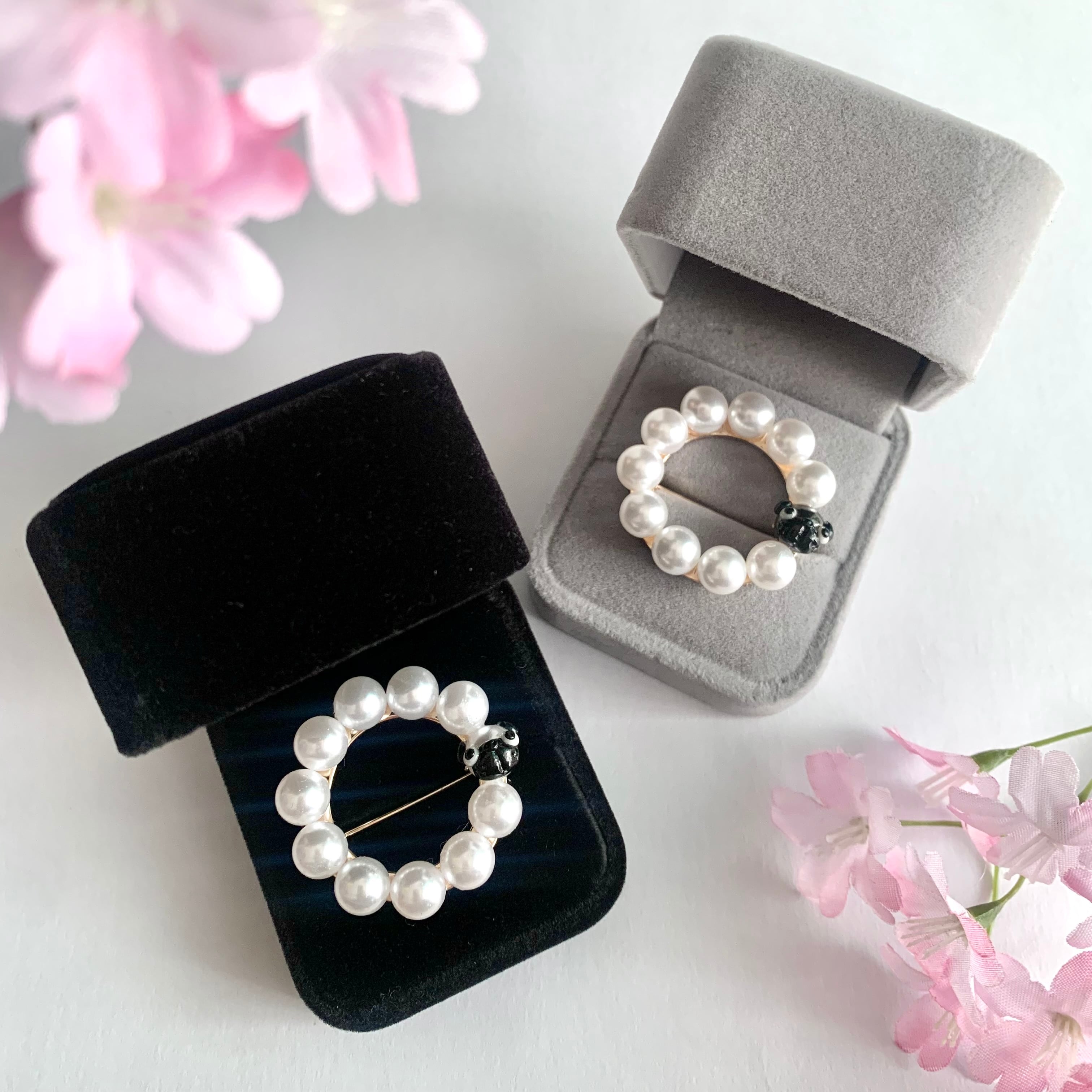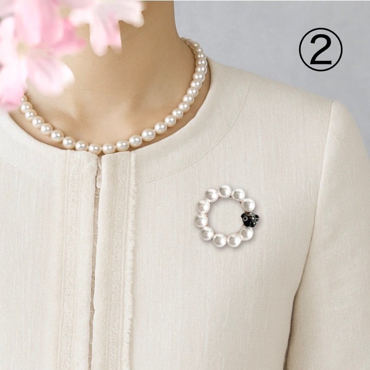 卒業式や入学式に華を添える、輝くパールパグのブローチ。