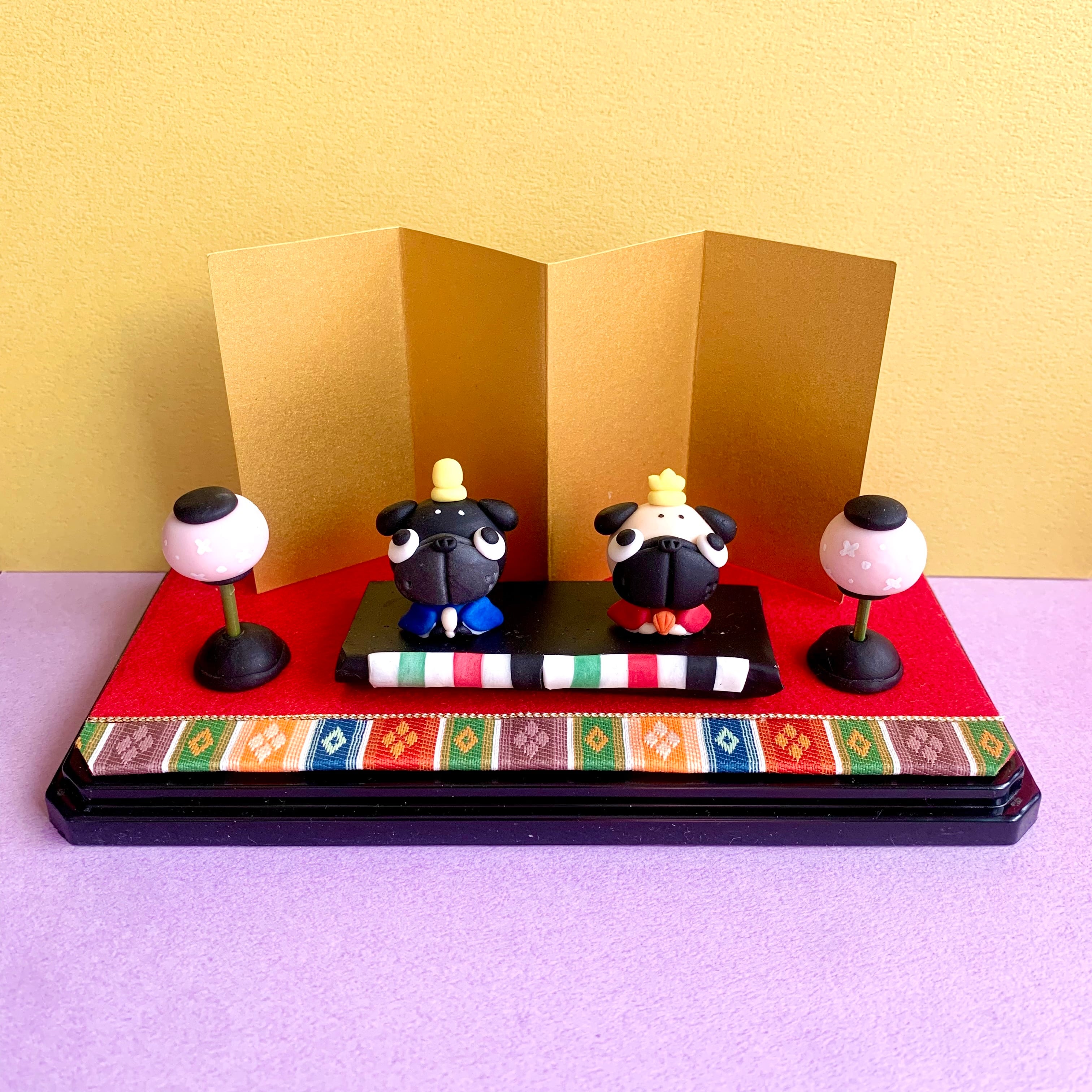 【受注生産】ひな祭りパグ置物一段・ケース付き送料無料