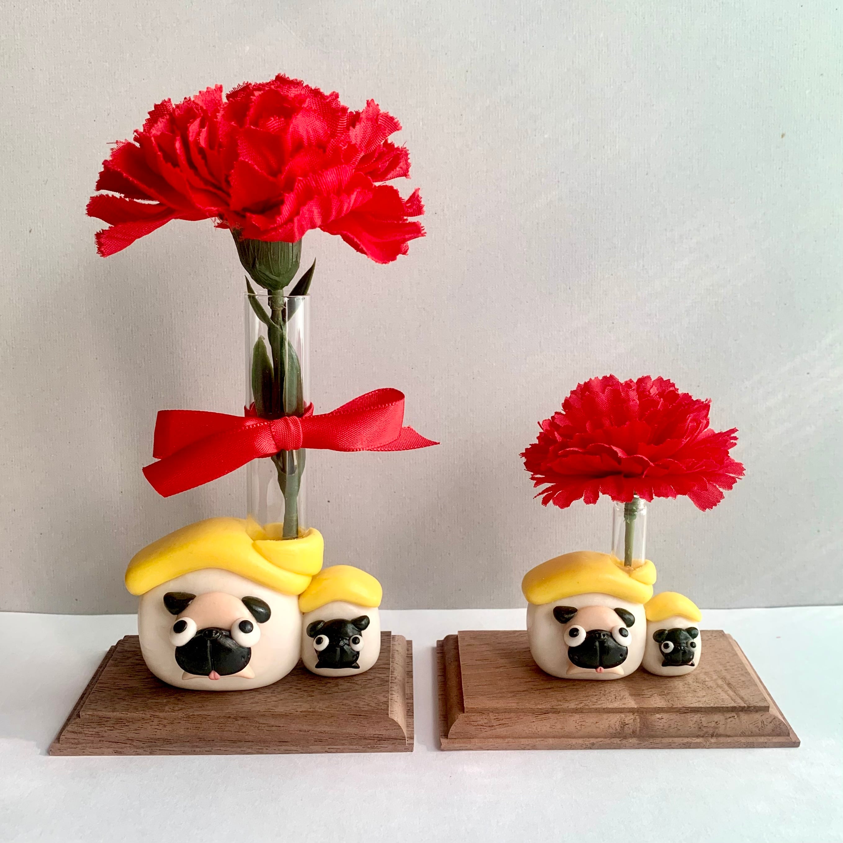 【受注生産・母の日】小さなパグのお家♪かわいいパグ一輪挿し〜4/15まで